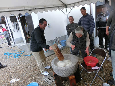 餅がつきあがる昼前ごろには町内から人々があつまり、にぎやかになります♪